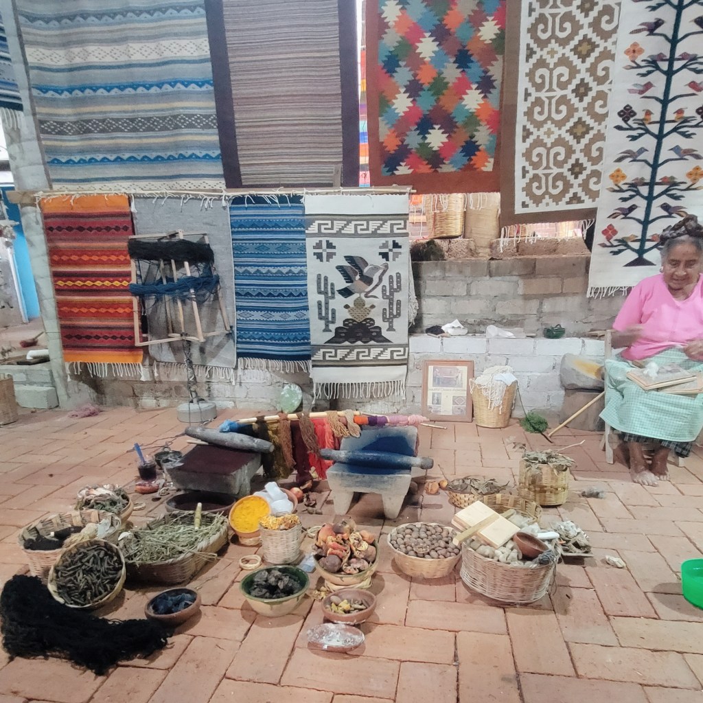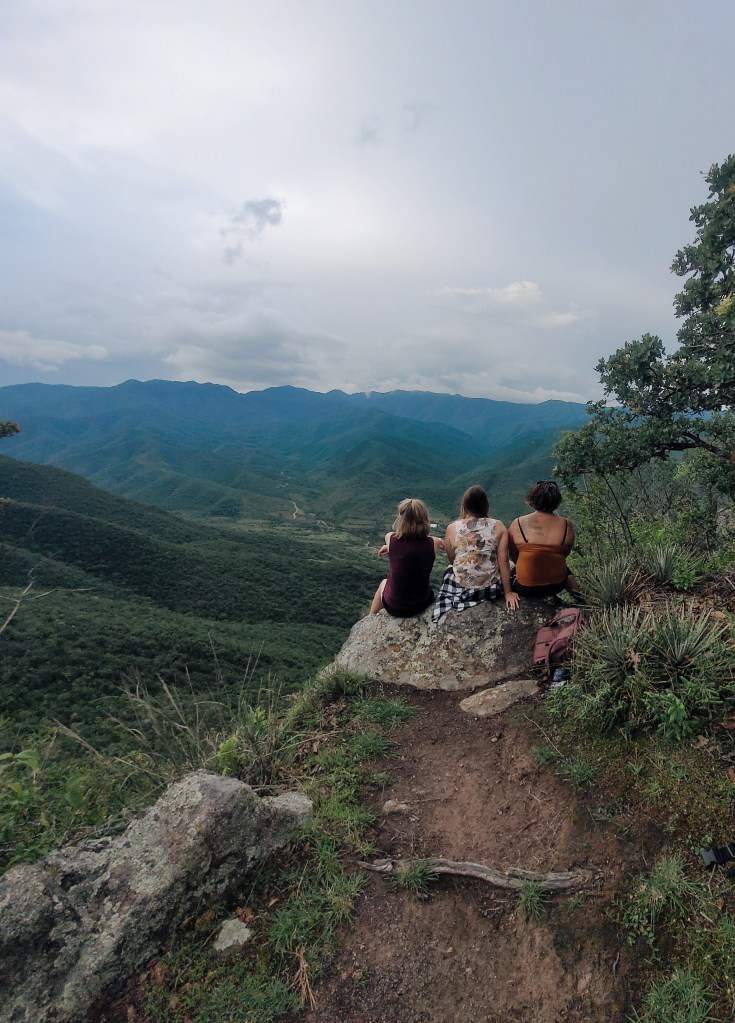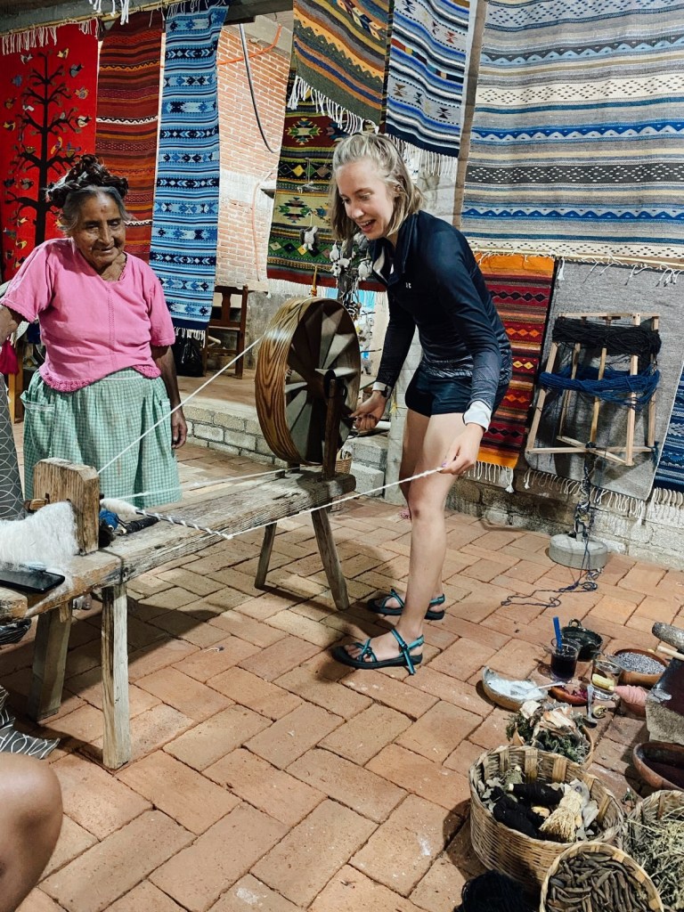 -Coyote Aventuras: One of the major highlights of Oaxaca was our Coyote Aventuras experience through Valle de Teotitlan. This included making candles with a Zapotec guide named Lila who taught us about Zapotec traditions and culture while we got to make our own wax candles. Next we visited Josefina’s house where she prepared an enormous meal with many courses of mole, quesadillas, potatoes, mezcal, and more food than we could ever imagine, made right before us in her outdoor kitchen! We even got a second chance to make tortillas under her tutilage, which was a relief for Morgen and Hannah, eager to redeem ourselves after the failures we endured in Morelos with Marin’s family. To rest up and walk off lunch, we enjoyed a weaving demonstration with Josefina’s mother and husband, who showed how wool is made into yarn, and the various natural elements that create different dyes. All of the demonstrations the family gave us were interactive and completely depended on natural resources. We had no idea so much skill and knowledge went into weaving, and we were thrilled to get to buy some weavings from their shop. Finally, the major feature of our adventure was the hike up El Picacho peak. We hiked up a steep incline to the top of the mountain where we could see for miles around, and then hiked back after sunset. It was definitely challenging, and pushed all of us, both mentally and physically, but it was an unforgettable experience in beautiful countryside. Thank you so much, Coyote Aventuras for guiding us through! It was the one thing we planned that worked out well for us in Oaxaca, and it was an experience we’ll never forget.